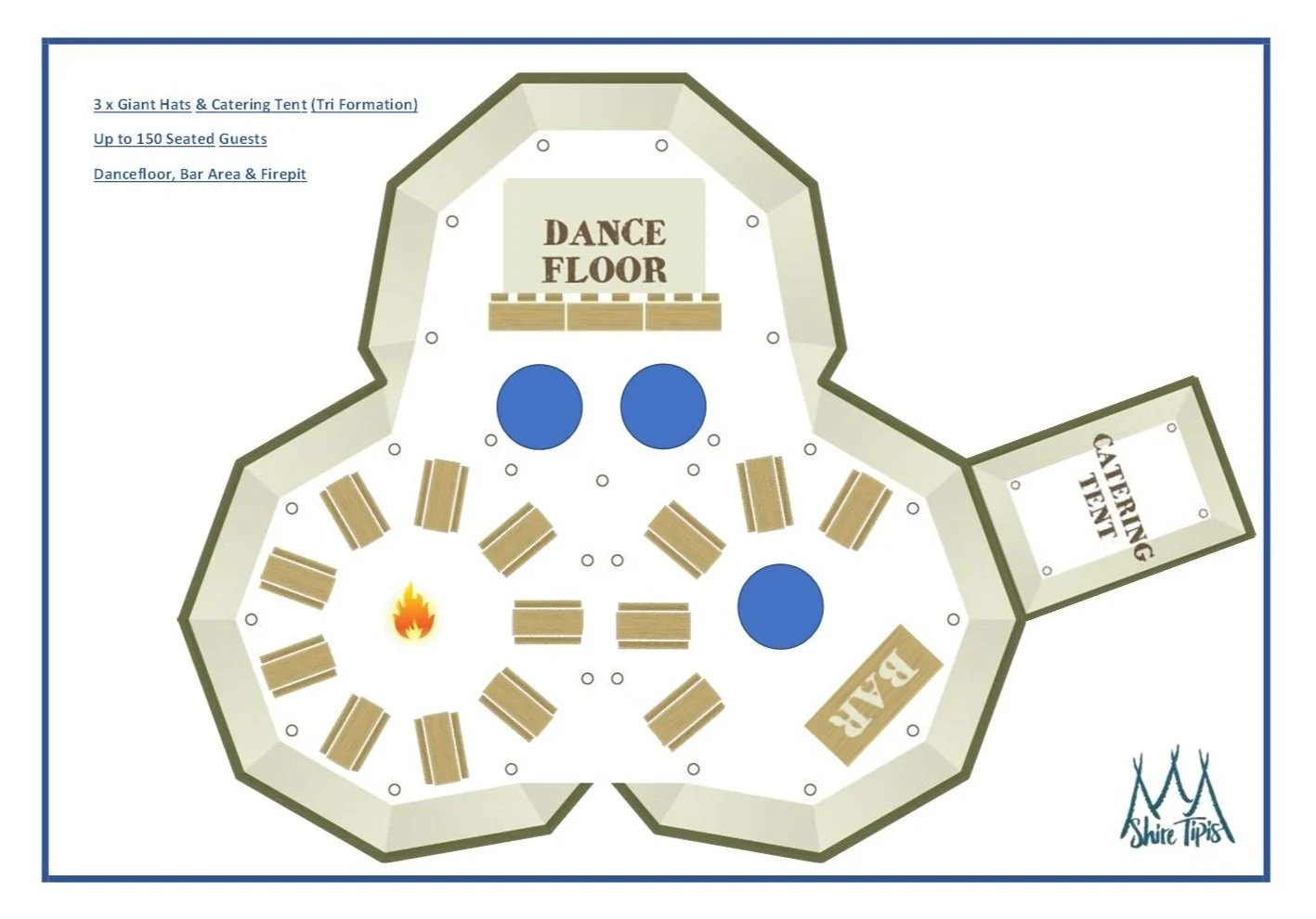 Shire Tipis - 3 x Giant Hat Tipis (Arc) & Catering Tent